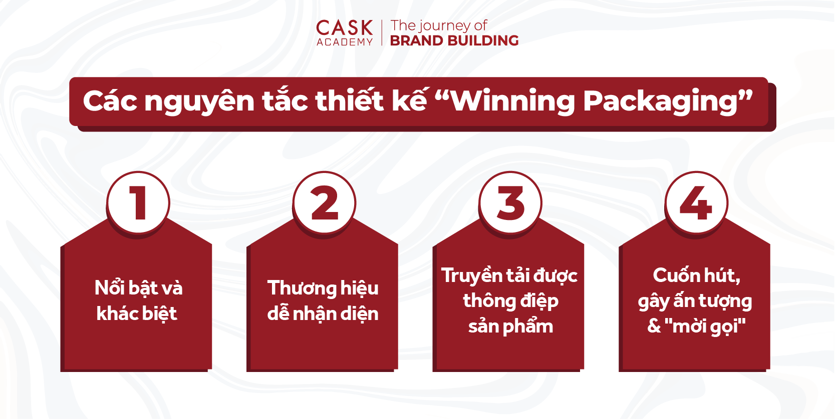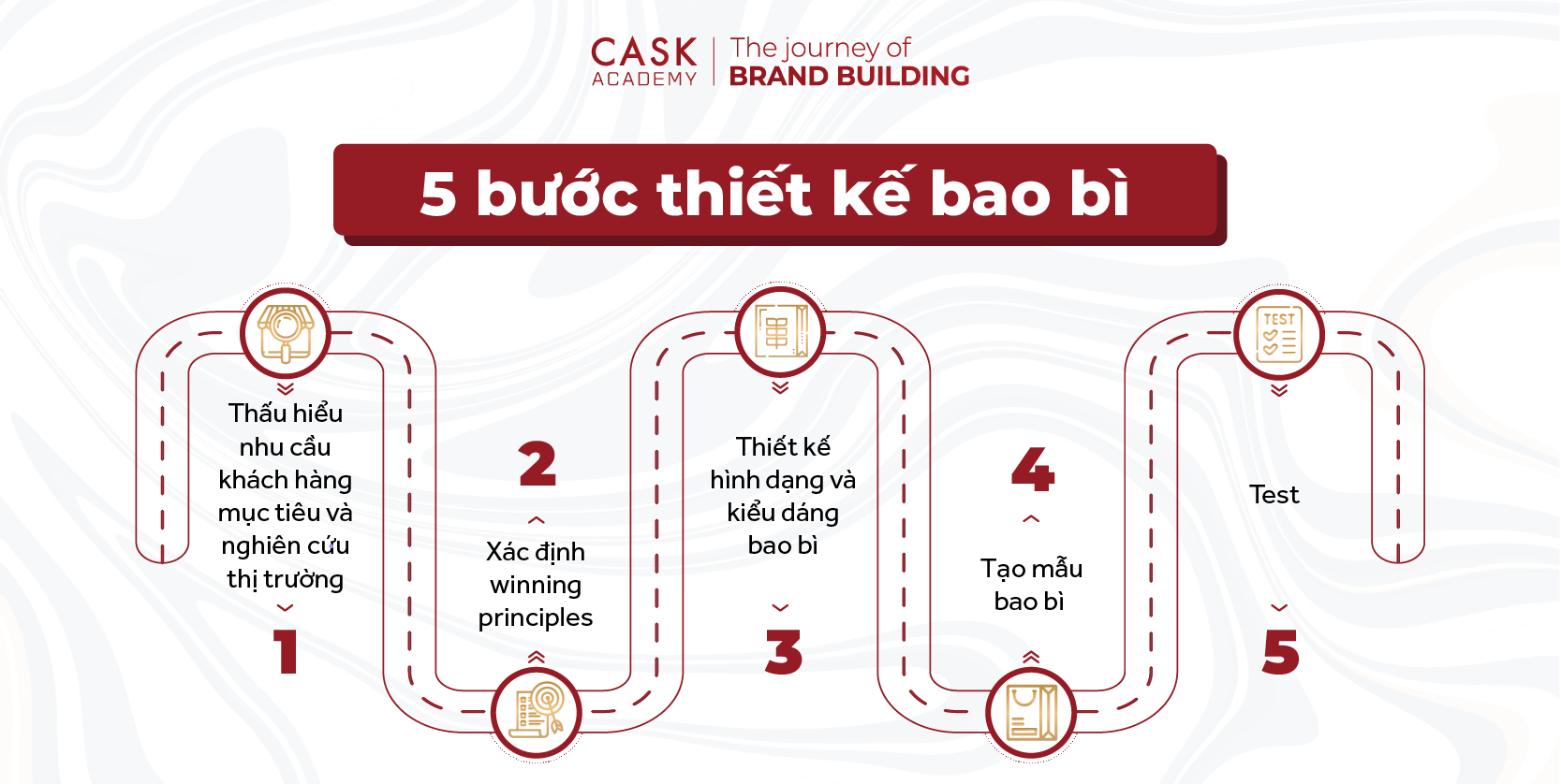 Bằng cách áp dụng các bước này, thương hiệu có thể tạo ra bao bì không chỉ đáp ứng nhu cầu chức năng mà còn mang đến trải nghiệm tuyệt vời cho người tiêu dùng, từ đó giúp sản phẩm nổi bật trên thị trường. Tại CASK Academy, cung cấp khóa học “Thiết kế chiến lược & kế hoạch Marketing” giúp bạn nắm vững những chiến lược xây dựng thương hiệu, bao gồm cả thiết kế bao bì hiệu quả.
