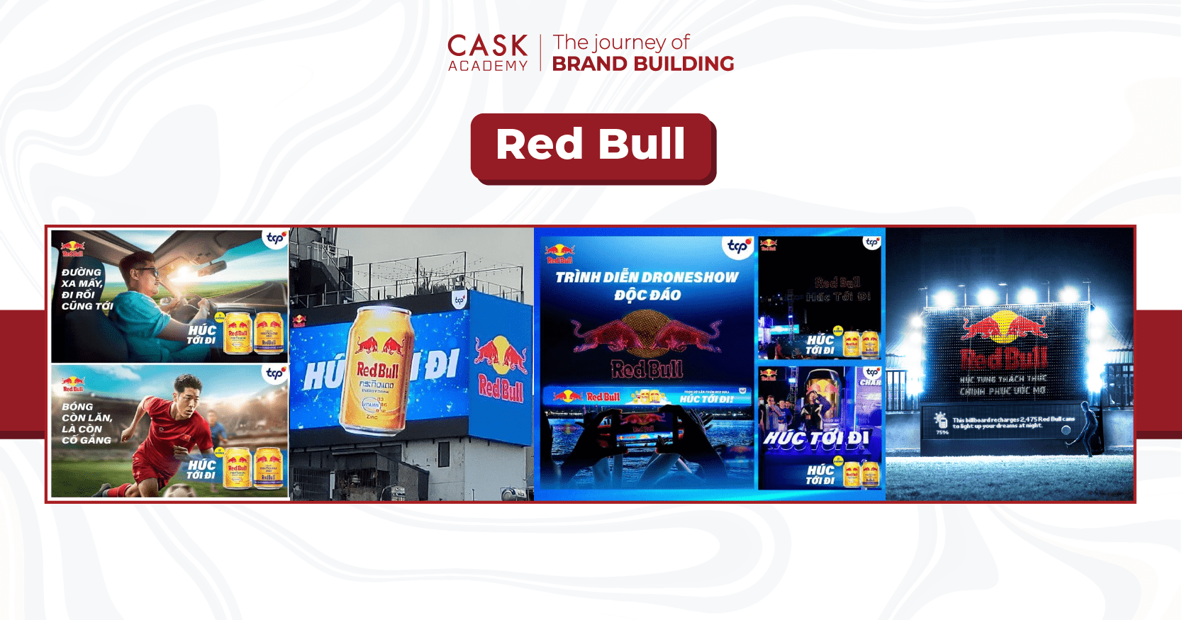 Red Bull là một thương hiệu nước tăng lực nổi tiếng toàn cầu, được biết đến với chiến lược marketing mạnh mẽ và sáng tạo. Thương hiệu này đã thành công trong việc xây dựng một hình ảnh năng động, trẻ trung và gắn liền với các hoạt động thể thao mạo hiểm, thông qua việc tài trợ cho các sự kiện, đội tuyển thể thao và vận động viên nổi tiếng.
