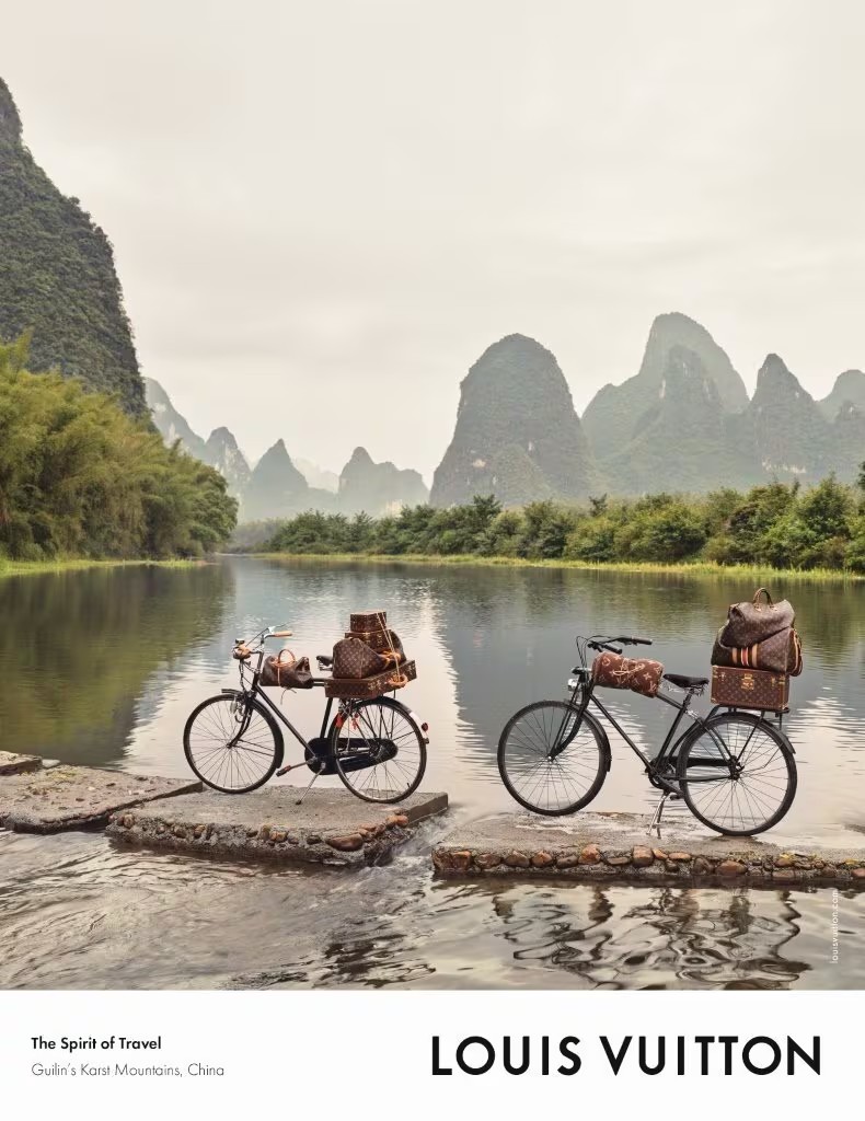 Chiến dịch kể câu chuyện bằng hình ảnh—không người mẫu, không lời thoại—với chiếc va li Monogram Horizon trôi nhẹ trên bè tre, hoặc túi Soft Keepall đặt cạnh xe đạp chở hành lý qua mặt nước yên tĩnh. Mỗi khung hình là một khoảnh khắc suy tưởng, đặt sản phẩm như một chủ thể im lặng nhưng biểu tượng, truyền tải sự giao thoa giữa craftsmanship Pháp và cảnh quan Trung Hoa mờ ảo.²