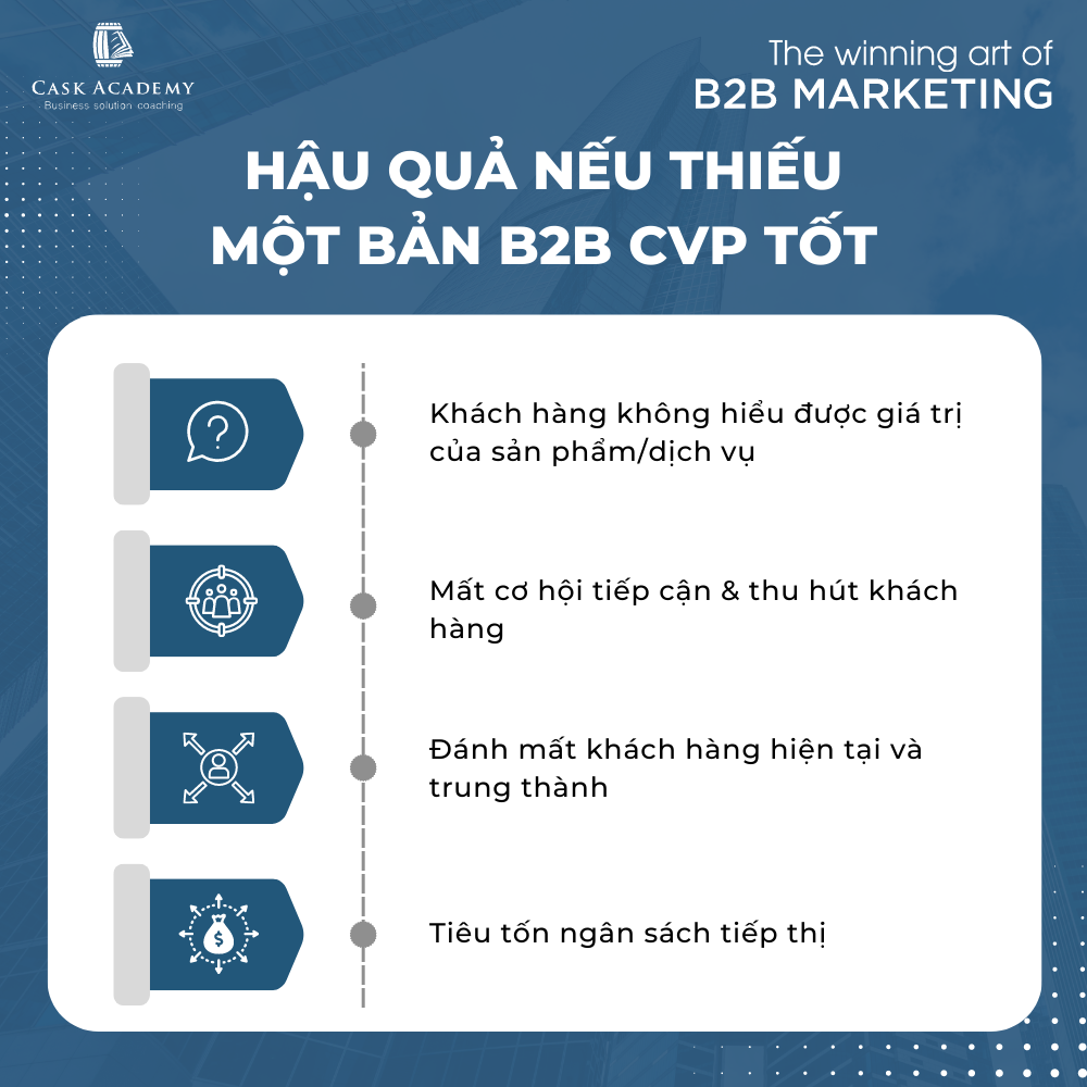 - Khách hàng không hiểu được giá trị của sản phẩm/dịch vụ: nếu CVP không được truyền đạt rõ ràng và thực thi hiệu quả, khách hàng sẽ không hiểu được lợi ích và giá trị thực sự mà sản phẩm/dịch vụ mang lại. Họ sẽ nhầm lẫn sản phẩm của doanh nghiệp với các đối thủ khác, không thích mua hoặc không hài lòng sau khi mua.