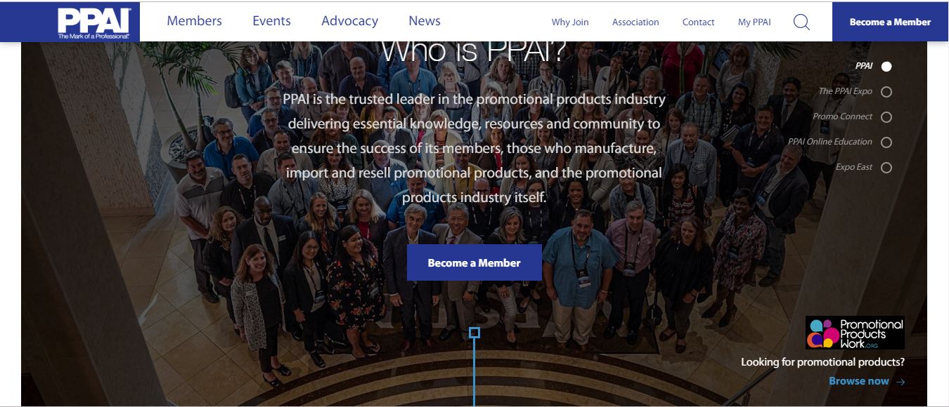 Vào năm 1904, có một vài nhà sản xuất các sản phẩm Promotion, vào thời điểm đó, 12 nhà sản xuất đầu tiên này thành thập hiệp hội thương mại sản phẩm quảng cáo đầu tiên, ngày nay chính là PPAI – Promotional Products Association International- Hiệp hội sản phẩm quáng cáo quốc tế. Hiện hiệp hội này có hơn 10.000 thành viên trên khắp thế giới, đại diện cho gần 25.000 nhà phân phối và khoảng 5.000 nhà sản xuất