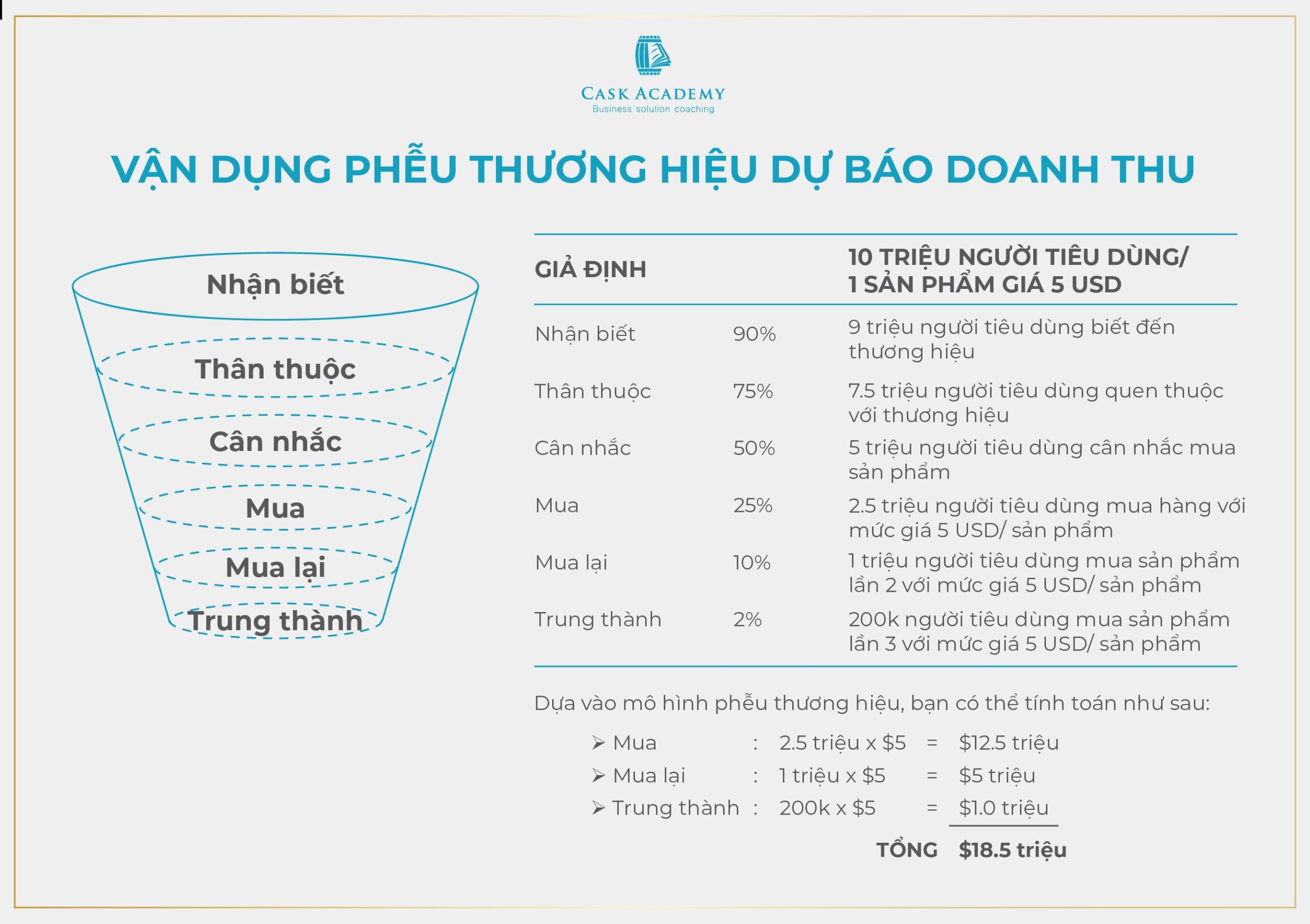Dựa vào mô hình phễu thương hiệu, bạn có thể tính toán như sau