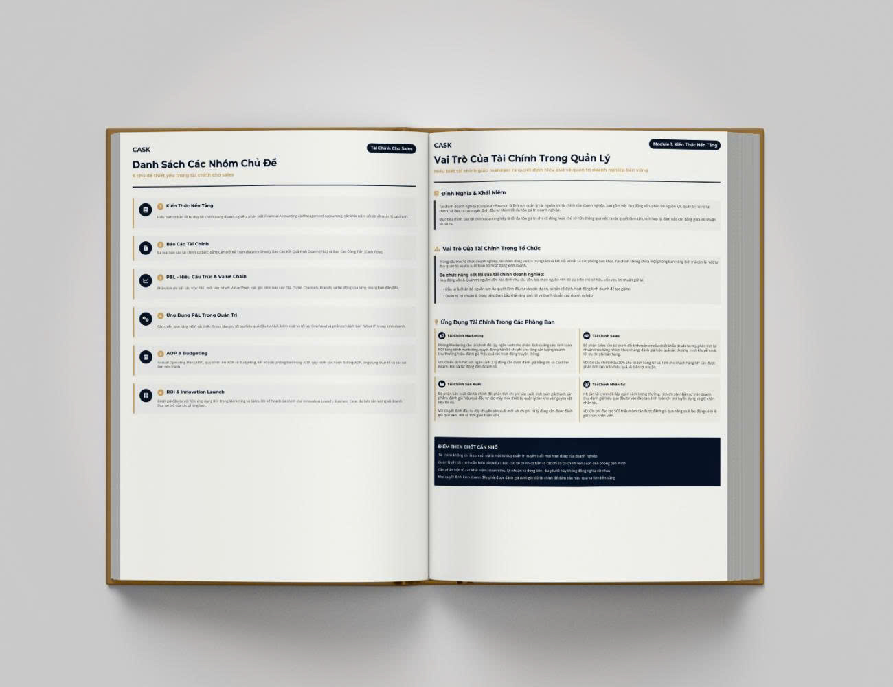 Cheatsheet "Finance for Non-Finance Managers" được CASK xây dựng nhằm trang bị cho Managers không chuyên về tài chính sẽ có tư duy tài chính thực tiễn, giúp họ đọc hiểu báo cáo, phân tích lợi nhuận, lập kế hoạch và kiểm soát hiệu quả đầu tư