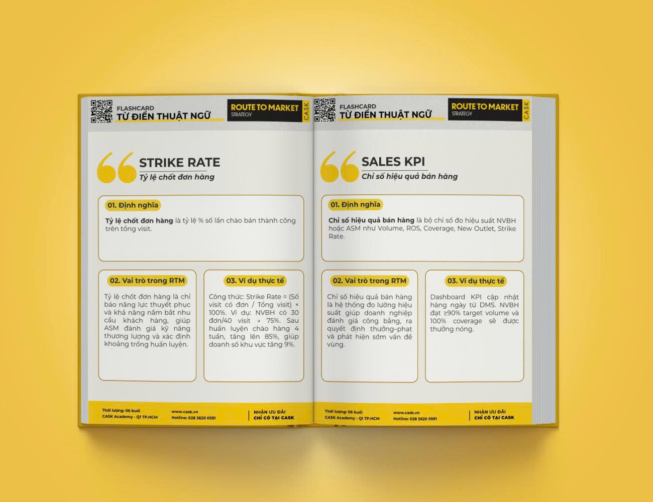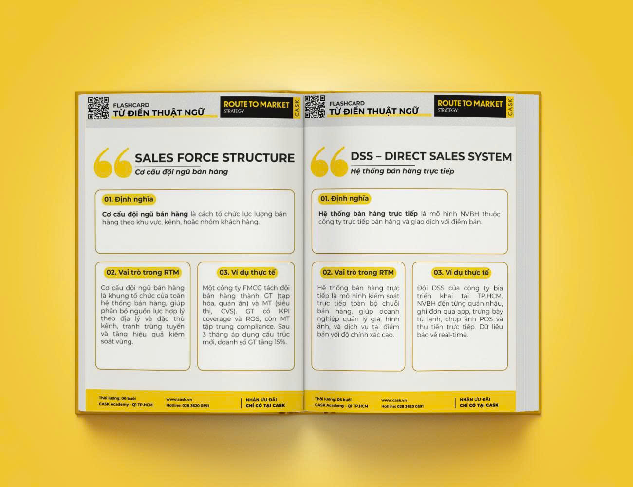 “Từ điển thuật ngữ RTM” là bộ flashcard 81 trang, gom nhóm toàn bộ thuật ngữ quan trọng của Route to Market vào 5 mảng: (1) Chiến lược & cấu trúc RTM, (2) Phân tích & quy hoạch kênh, (3) Quản trị mô hình NPP, (4) Đội ngũ bán hàng & vận hành, (5) Công cụ & dữ liệu RTM. Mỗi thuật ngữ đều có định nghĩa – vai trò trong RTM – ví dụ thực tế, giúp người học không chỉ hiểu khái niệm mà còn thấy rõ cách áp dụng vào hệ thống phân phối GT/MT/NPP và vận hành bán hàng hằng ngày.