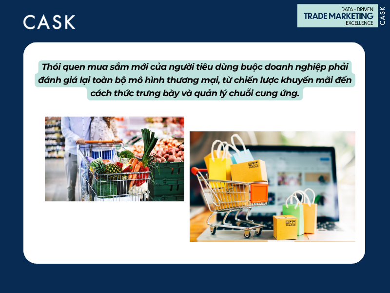 Cùng lúc, chiến lược Trade Marketing cũng chuyển mình mạnh mẽ. Trong năm 2021, ngành thực phẩm đẩy mạnh tương tác kỹ thuật số, trong khi ngành chăm sóc cá nhân tập trung vào khuyến mãi và giảm giá. Đến 2022, các thương hiệu đồ uống ưu tiên mô hình phân phối đa kênh (omnichannel), còn hàng gia dụng mở rộng hợp tác thương hiệu. Sang năm 2023, các chiến dịch truyền thông mạng xã hội trở thành động lực tăng trưởng chính trong nhóm hàng snack và tiện lợi.