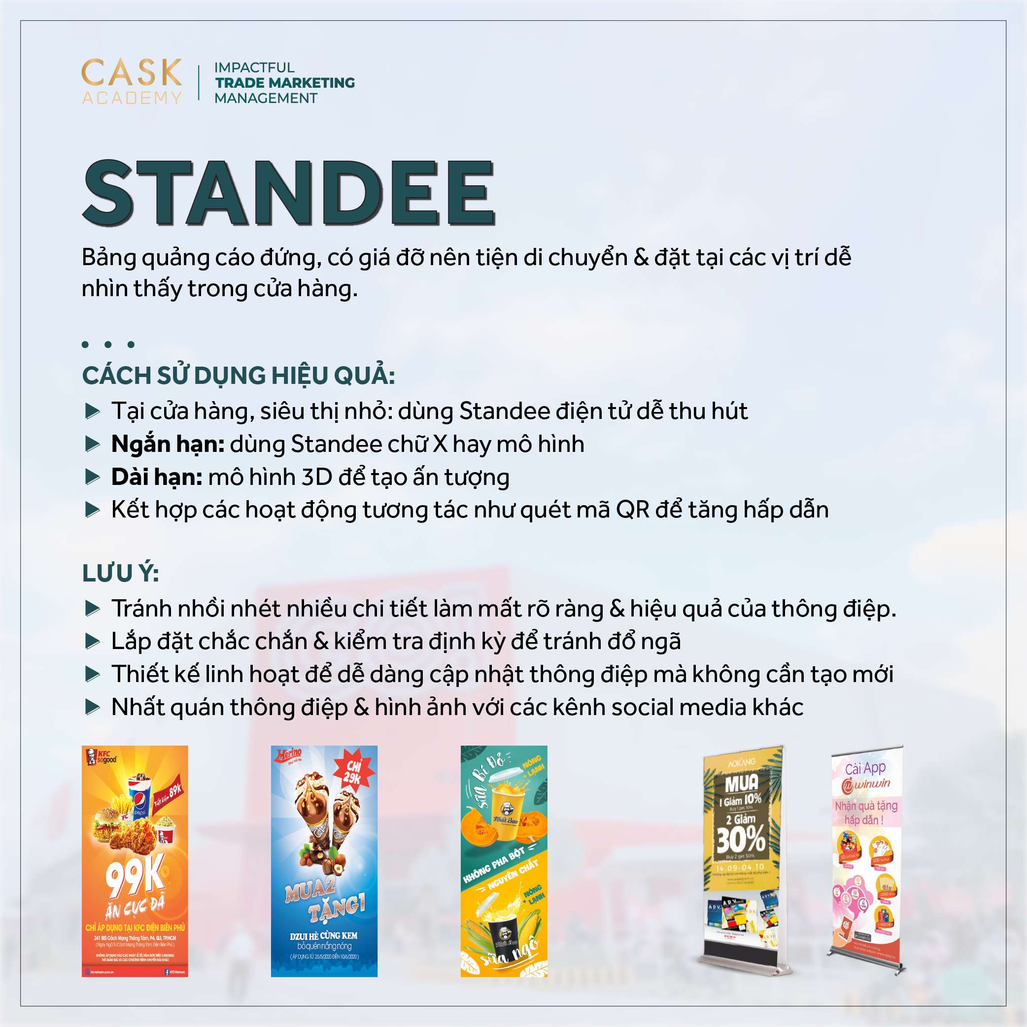 - Đồng bộ hóa với các kênh quảng cáo khác: Đảm bảo rằng thông điệp và hình ảnh trên Standee đồng nhất với các chiến dịch quảng cáo trên các kênh social media khác để tạo sự nhất quán cho thương hiệu.