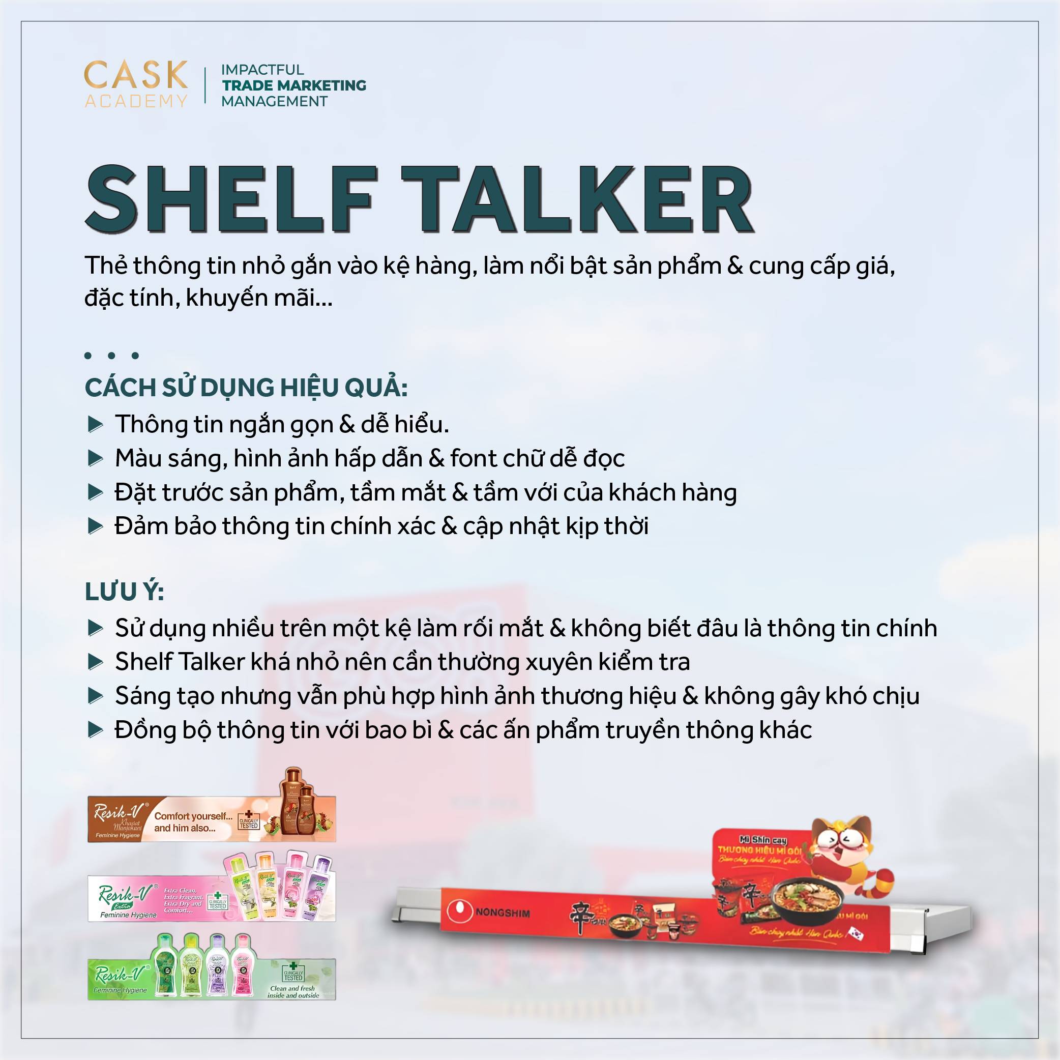 - Đồng bộ hóa thông tin: Đảm bảo thông tin trên Shelf Talker đồng bộ với thông tin trên bao bì sản phẩm & các ấn phẩm truyền thông khác để tạo sự nhất quán & tin cậy cho khách hàng.