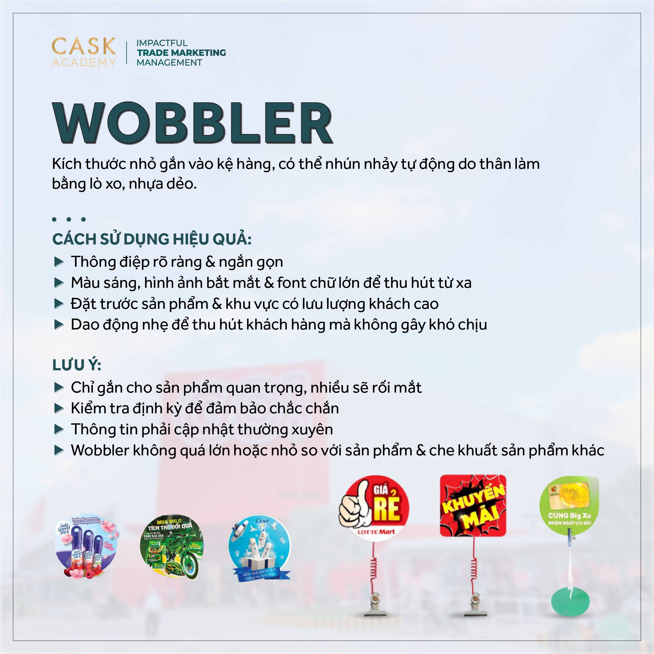 - Không lạm dụng: Tránh sử dụng quá nhiều Wobbler trong một khu vực nhỏ vì sẽ gây rối mắt và làm giảm hiệu quả tiếp thị. Chỉ chọn lọc sản phẩm quan trọng để gắn Wobbler.