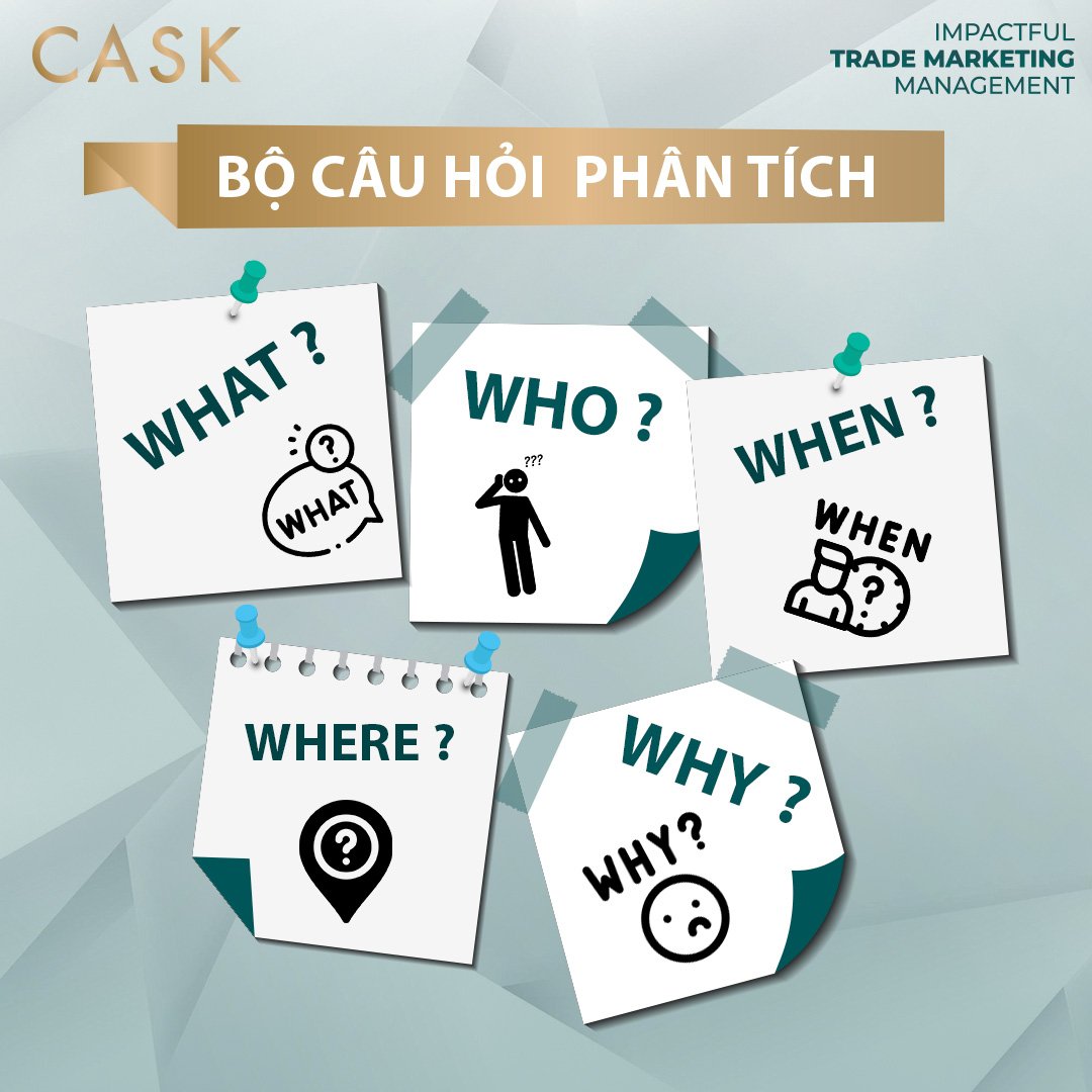 Khi xem xét tình hình theo các cấp độ, bạn hãy vận dụng bộ câu hỏi phân tích & phép so sánh. Bộ câu hỏi phân tích gồm 5 mục: Cái gì, Khi nào, Ở đâu, Đối tượng & Tại sao.