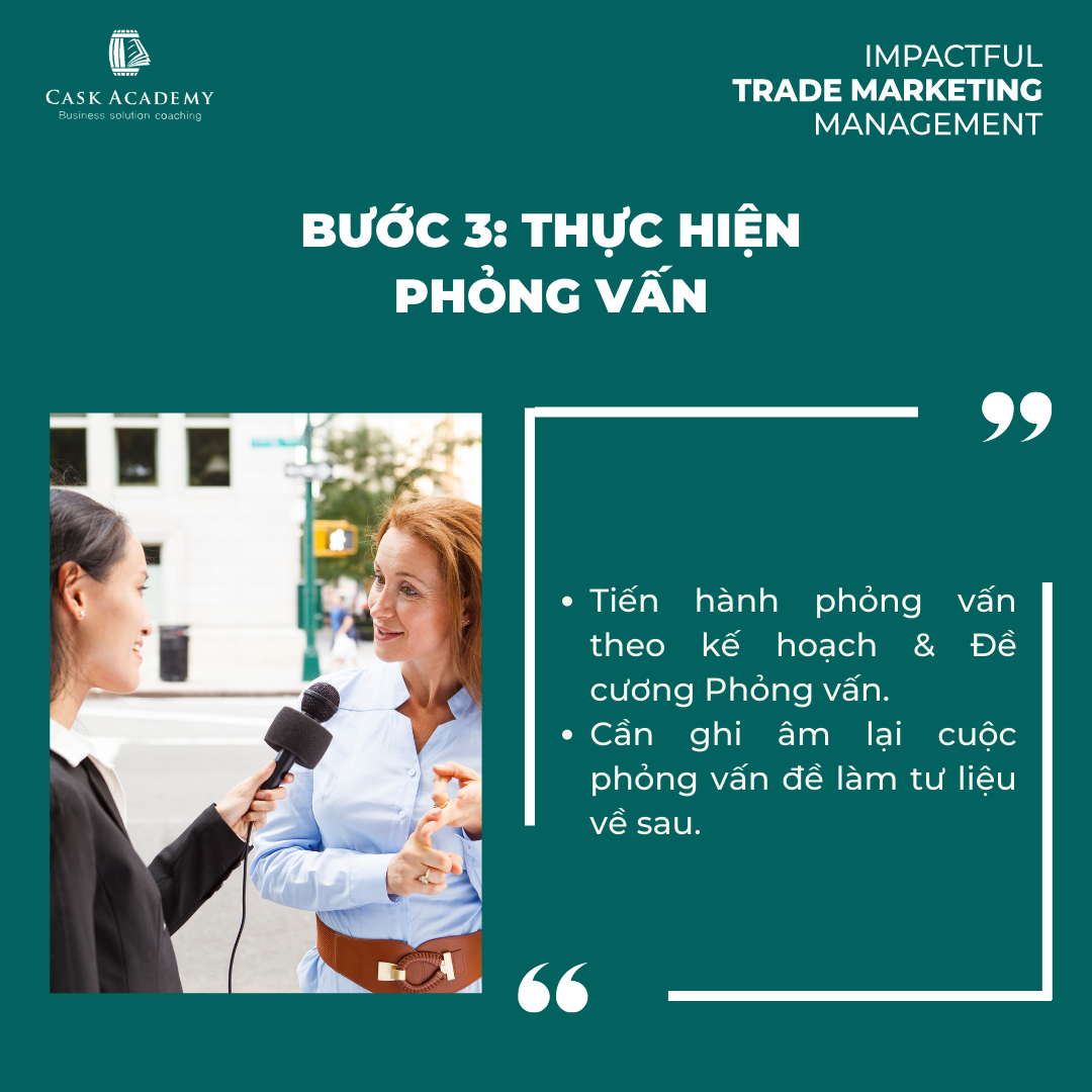 Tiến hành phỏng vấn theo kế hoạch & Đề cương Phỏng vấn. Cần ghi âm lại cuộc phỏng vấn đề làm tư liệu về sau.