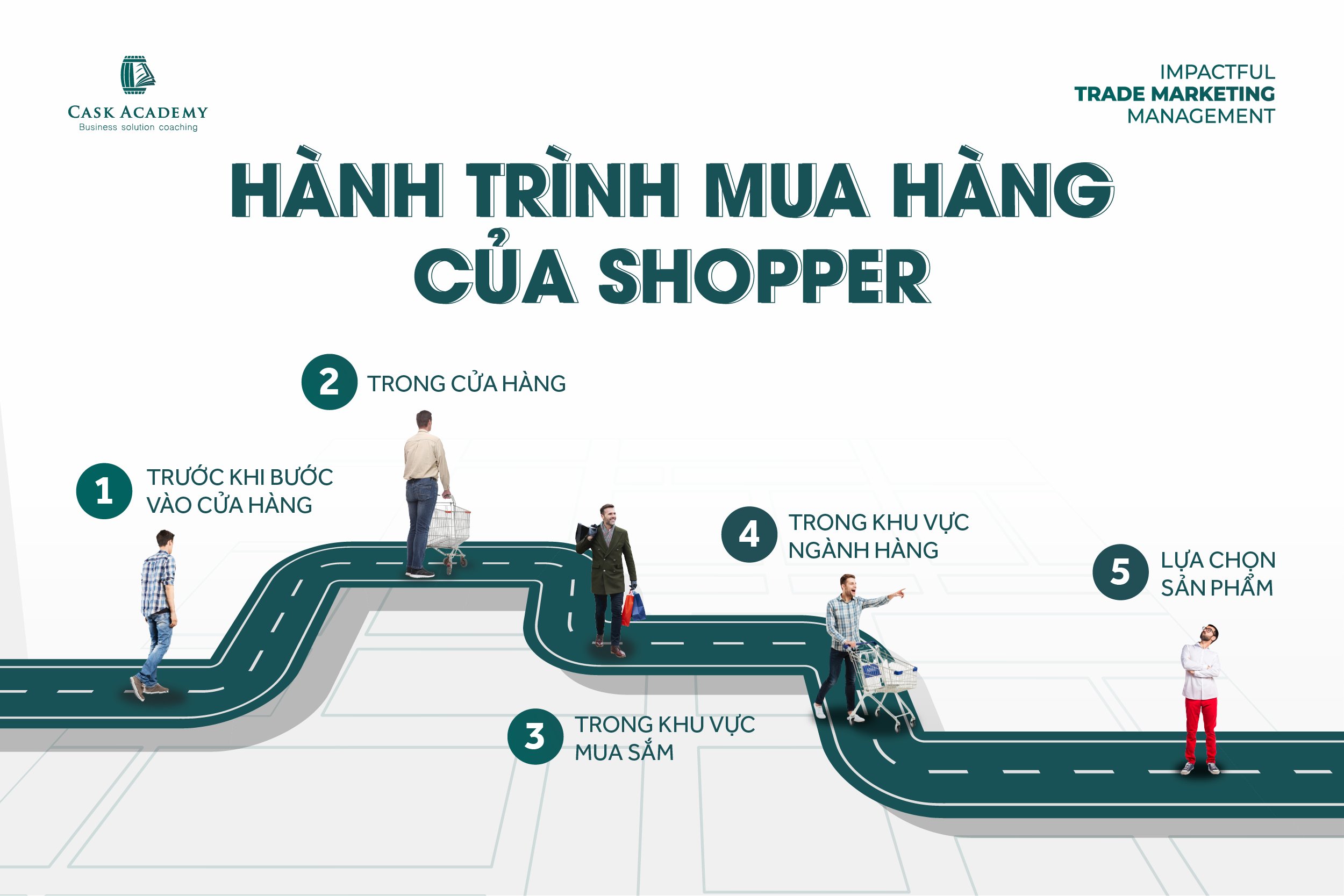 Mô hình 3M được xây dựng dựa trên Shopper Path-To-Purchase – hành trình mua hàng của Shopper với 5 giai đoạn: