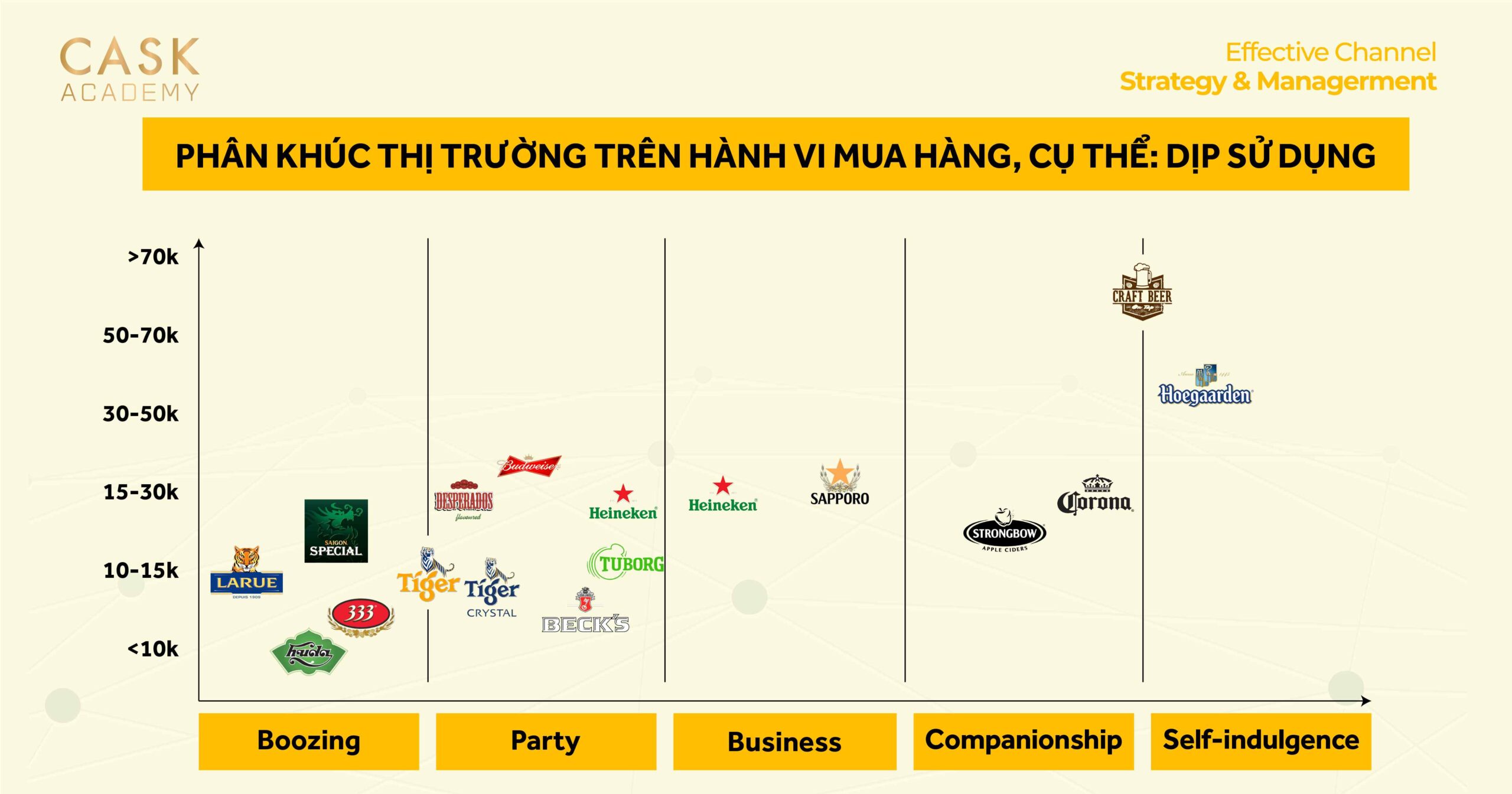 - Phân khúc khách hàng: Người tiêu dùng thích bia nhẹ nhàng, dễ uống, thường tham gia các buổi tiệc hoặc sự kiện xã hội.