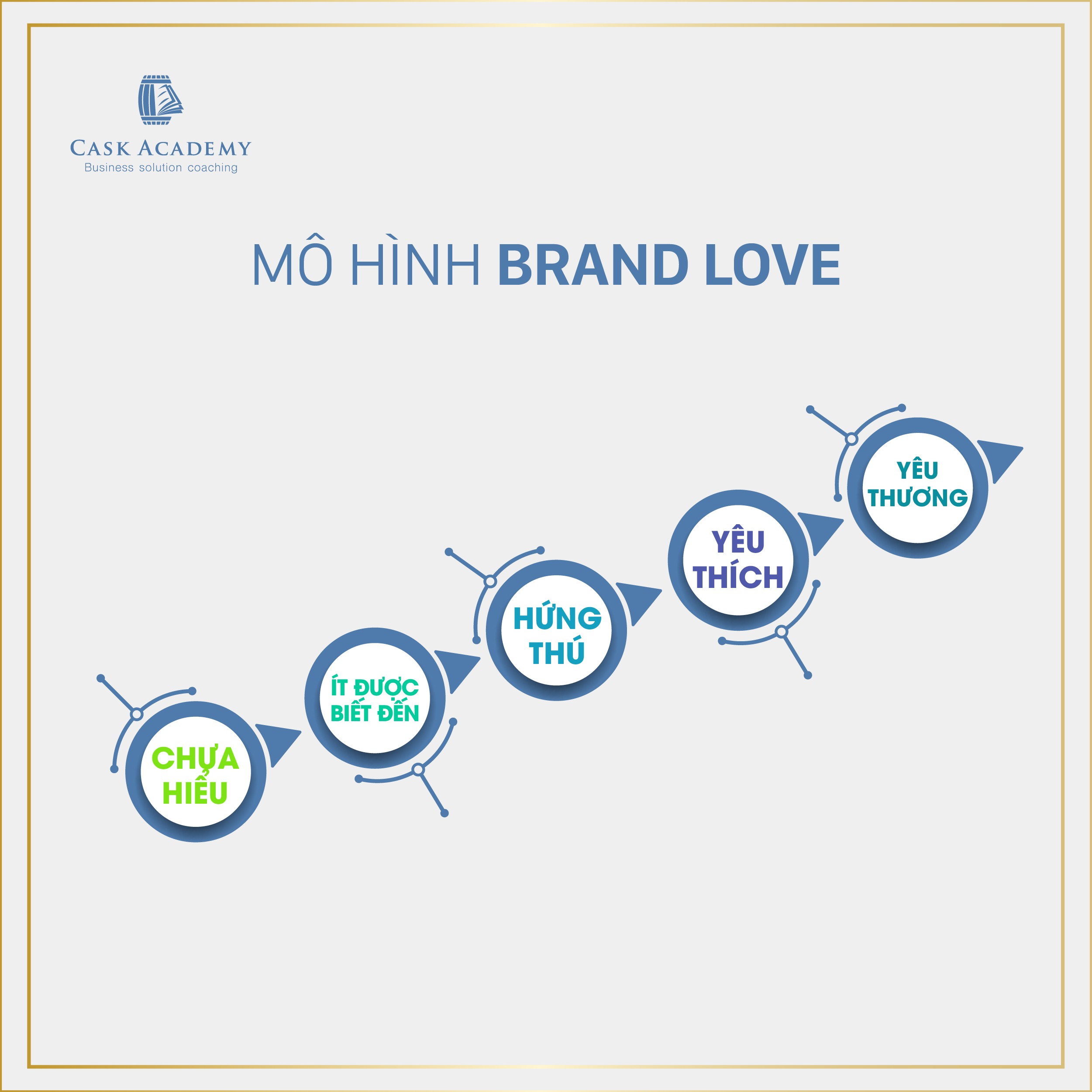 Ở giai đoạn yêu thương, Brand trở thành 1 biểu tượng trong lòng khách hàng. Brand có 1 cộng đồng fan hâm mộ – yêu thương và bảo vệ Brand. Họ tự hào được là 1 phần của Brand. Cái Brand cần làm lúc này là mang lại những trải nghiệm tuyệt diệu cho các khách hàng trung thành để họ chia sẻ về Brand với cộng đồng.